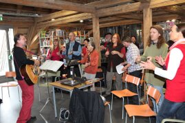 „Ein regelmäßiges Singen mit Kindern und Erwachsenen findet in der Stadtbibliothek ja schon statt“, sagt Schmidtke. „Das hat mich inspiriert, denn auch ich bin jemand, der gerne singt.“ Allerdings: „Kinderlieder sind nicht so ganz meine Sache.“ Schmidtke widmet sich lieber mit einigem Ernst dem Spiritual respektive dem Gospel, in dessen Geschichte er sich auch gut auskennt. Er erlebte Gospelgottesdienste in den USA und in Deutschland, er ist begeistert, wie er sagt, „von der Art und Weise, wie der Glaube dabei emotional und inhaltlich gelebt wird“. „Damit“, sagt er, „können die Leute etwas anfangen.“